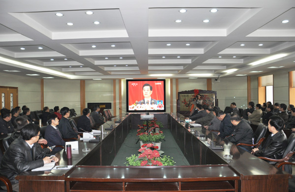 备受瞩目的中国共产党第十八次全国代表大会于8日上午9时在北京人民大会堂胜利开幕。胡锦涛总书记代表第十七届中央委员会向大会作了题为《坚定不移沿着中国特色社会主义道路前进为全面建成小康社会而奋斗》的报告。学校在第二会议室召开党委中心组(扩大)学习会,集体收看大会开幕会直播。校领导王兴隆、孔庆浩、刘举科、张兴福、杨皖东、马振林、王基、莫超与机关各部门、各党总支(直属党支部)和各二级学院主要负责人参加了学习会。