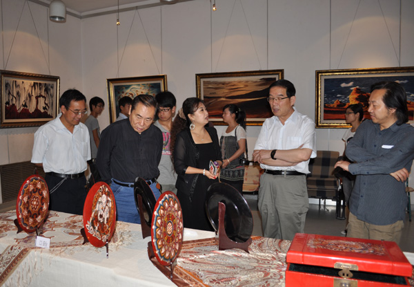 6月14日上午,“走进敦煌”——2012美术学院毕业生毕业设计展在美术馆隆重开幕。校党委书记王兴隆,校长孔庆浩,校党委副书记王汝锋,校党委常委、副校长杨皖东出席开幕式。省内兄弟院校的专家学者、企业界代表和伟德机关、各二级学院负责人等参加了开幕式。