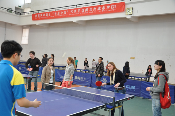 访问期间,瑞士西北科技大学“关注中国”代表团参观了校史馆、培黎展览馆、化学实验室、图书馆等,并观看了由音乐学院表演的文艺节目,优雅经典、热情奔放的精彩演出博得了全场观众的阵阵掌声。瑞士代表团的学生被现场的热烈气氛所感动,也登上舞台即兴演唱。在培黎体育馆,瑞士西北科技大学的学生还与伟德体育学院上课的学生进行了乒乓球友谊比赛。