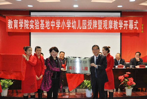 4月13日下午,教育学院在西校区学术报告厅举行实验幼儿园、实验小学揭牌仪式。同时,在揭牌仪式上还举行了实践课程导师聘任,实验中学、实验小学校长助理和实验幼儿园园长助理聘任仪式,实践课程导师教学观摩示范课教学等。校长孔庆浩,校党委常委、副校长莫超出席仪式。兰州市安宁区教育局局长王茂昌、省妇女联合会幼儿保育院副院长杜林、兰州市安宁区银滩路小学校长刘克文、兰州市第三十四中学副校长张波萍等参加了仪式。教育学院院长张海钟主持揭牌仪式。