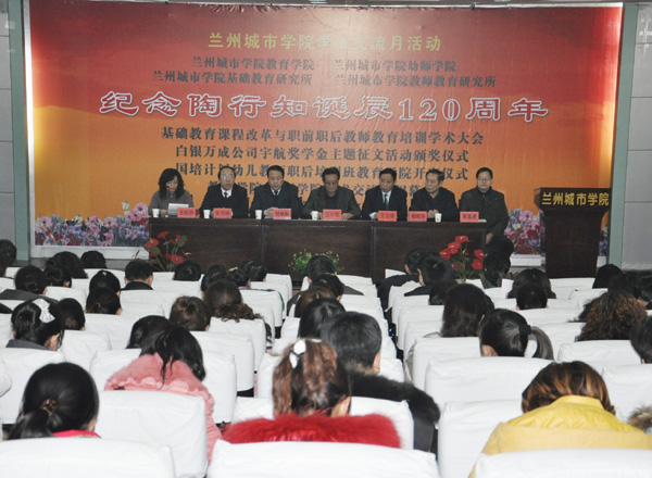 今年是我国伟大的人民教育家陶行知诞辰120周年,为了学习研究陶行知教育思想,弘扬陶行知思想和精神,学习陶行知先生的“普及教育、全面教育、创造教育、生活教育、终身教育”理念,不断探索中国现代化教育的发展道路,深入推进院所科研、学术水平的发展,促进教师教育课程改革,提高基础教育和教师教育质量。12月27日下午,由教育学院、幼儿师范学院、基础教育研究所、教师教育研究所联合举办的纪念陶行知诞辰120周年基础教育课程改革与职前职后教师教育培训主题学术报告会在校本部第一学术报告厅举行。校党委书记王兴隆,校党委副书记王汝锋,校党委常委、副校长刘举科、杨皖东,兰州市第三十四中学、bevitor伟德国际1946实验中学校长张亭等出席纪念活动。