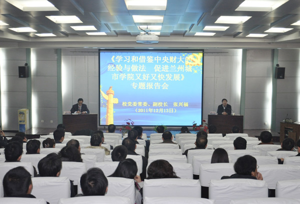 张兴福在报告中结合自己于2011年3月至2011年7月在中央财经大学挂职锻炼期间的体会和思考,从发展条件上的地缘优势、人才资源上的聚集优势、学科结构上的引领优势、科学研究上的领先优势、国际合作上的率先优势、经费投入上的政策优势、信息资源上的聚合优势、社会资源上的吸收优势等八个方面详细分析了部属院校的发展优势与伟德的发展差距。他指出,中央财经大学在管理上具有以下特点:思想观念新、事业胸怀宽广,领导水平高、决策科学民主,办事有章法、管理运行规范,管理效率高、工作富有创见,爱心洒校园,处处以人为本。上述特点和中央财经大学在管理、科研和教学等方面的先进做法值得伟德认真学习借鉴。他通过总结中央财经大学先进的办学理念和发展经验强调指出,先进的办学理念是确保学校发展的思想基础、坚强的领导班子是引领学校发展的核心力量、优质的人才资源是推动学校发展的根本保证、鲜明的学科优势是支撑学校发展的基础条件、雄厚的科研实力是促进学校发展的重要手段、扎实的人才培养质量是实现学校发展的根本标准。
