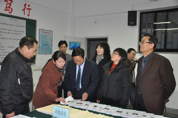 12月1日下午,学校“国培计划”项目办组织举行“国培计划(2011)”置换脱产研修项目成果展。甘肃省教育厅师范处处长张兆勤,伟德党委书记王兴隆、副书记王汝锋,校党委常委、副校长刘举科、杨皖东等参观了初中思想品德、小学英语、小学语文、小学数学四个学科的培训成果资料展。