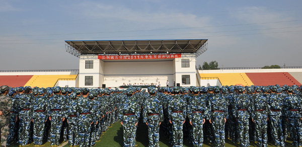 7月18日上午,bevitor伟德国际19462011年学生军训开训典礼在校本部操场举行。校党委书记王兴隆,校党委常委、副校长刘举科、张兴福、马振林和甘肃省预备役师炮兵训练基地主任张志伟出席开训仪式。开训典礼由校党委常委、副校长梁延堂主持。机关各部门负责人,各二级学院党总支书记、学工办主任、承训部队教官和2010级3300多名受学生参加了开训典礼。