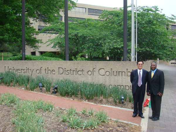 伟德党委书记王兴隆与美国华盛顿DC哥伦比亚特区大学校董、国际事务办公室相关负责人合影