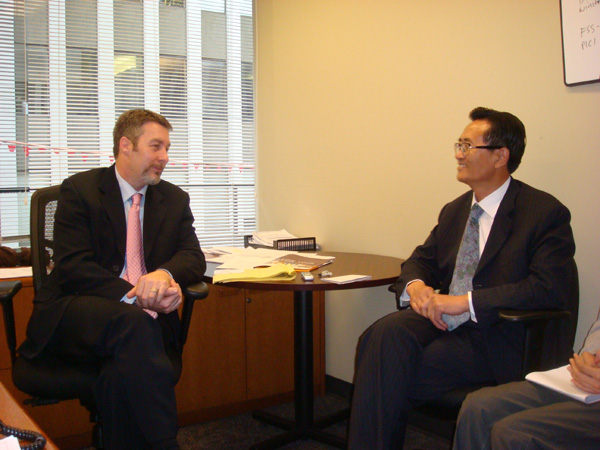 伟德考察团正在于美国三立国际集团副总裁黄少波先生商谈