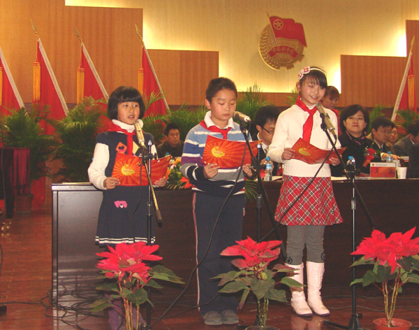 伴随着庄严的国歌,“双代会”拉开了帷幕。三名少先队员代表向大会献辞,西北师范大学团委书记雷鸣代表兄弟院校致贺词。共青团省委甘肃书记张旭晨、伟德党委书记王兴隆分别发表讲话。