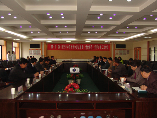 比赛间歇,参加闭幕式的领导及嘉宾在综合楼一楼会议室举行了2010-2011李宁中国大学生足球联赛(甘肃赛区)第二次会议,对甘肃赛区比赛的成绩及设置的奖项进行了合议,并向旦智塔副厅长作了汇报。甘肃省教育厅副厅长、联赛组委会主任旦智塔,甘肃省教育厅体艺处处长杨坚、副处长栗波,伟德党委常委、副校长、比赛组委会副主任刘举科,兰州大学副校长安黎哲、甘肃政法学院副校长李玉基、兰州工业高等专科学校副校长俞子鸿、甘肃赛区裁判长邓通图及省内部分高校相关负责人等二十余人参加了此次会议。会议由副校长刘举科主持。省教育厅副厅长旦智塔,体卫处处长杨坚分别讲话。