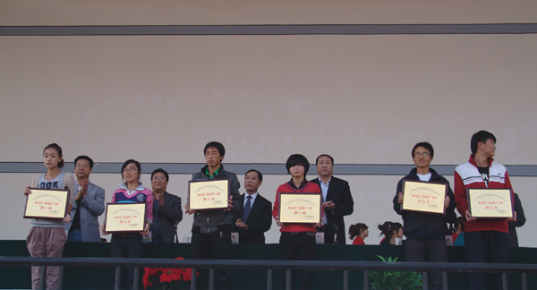 美术学院、数学学院、培黎技术工程学院荣获男子团体总分前三名,化学与环境科学学院、数学学院、文学院荣获女子团体总分前三名。机关总支、外国语学院等6个单位荣获优秀组织奖;传媒学院、社会管理学院等8个单位荣获体育道德风尚奖;体育学院、音乐学院、实验中专、城市经济与旅游文化学院荣获表演奖。陈伟、刘兴龙、刘花分别刷新了乙组男子三级跳、乙组男子铅球、乙组女子400米的纪录。