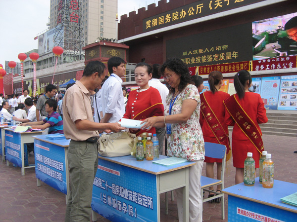 6月26日上午,伟德甘肃省第二十一国家职业技能鉴定所在东方红广场开展“贯彻国务院办公厅《关于进一步支持甘肃经济社会发展的若干意见》精神,促进人力资源开发,加强技能人才培养,开展职业技能鉴定质量年”大型宣传活动。