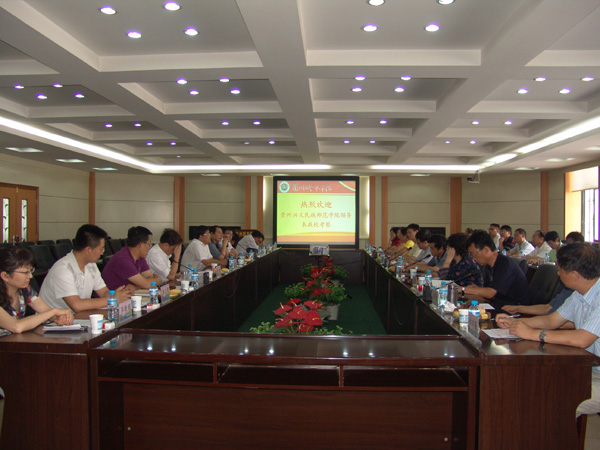 7月10日下午,贵州兴义民族师范学院副校长姜子昌、王家鑫率领该校考察团一行26人来伟德参观考察。学校在综合教学楼中层干部会议室举行欢迎座谈会,会议由校党委常委、副校长杨皖东主持。