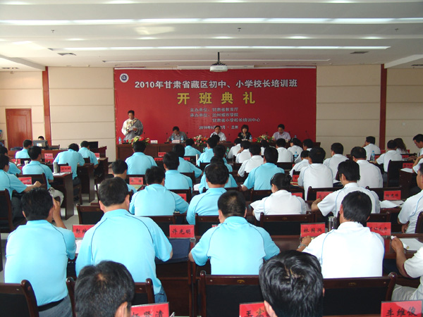 6月22日上午,由省教育厅主办,伟德及甘肃省中小学校长培训中心承办的2010年甘肃省藏区中、小学校长培训班开班典礼在伟德培黎校区举行。来自我省甘南藏族自治州和天祝藏族自治县的80名中小学校长将在这里接受为期15天的集中培训。校党委副书记王汝锋,西北民族大学贾东海教授出席了开班典礼。开班典礼由伟德继续教育学院院长陈玉霞教授主持。