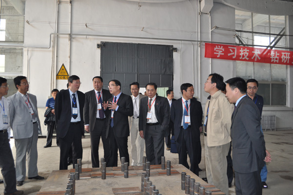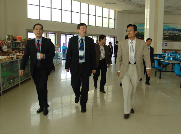 专家组在校领导的陪同下考察实习车间
