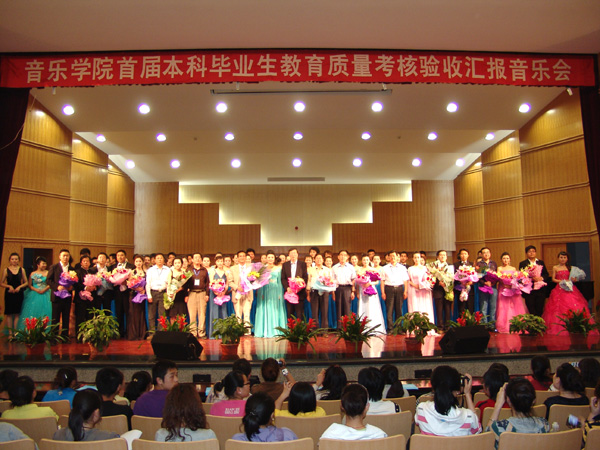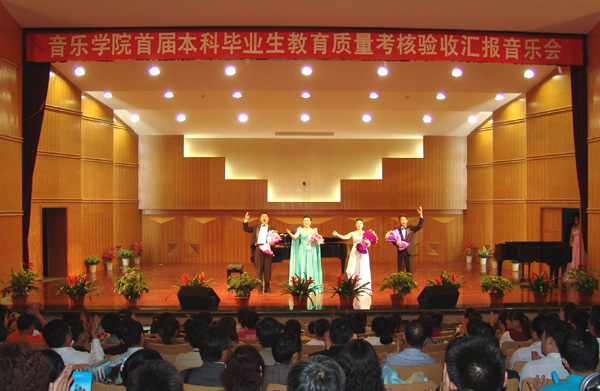 5月10日晚,伟德音乐学院首届本科毕业生教育质量考核验收汇报音乐会在音乐厅举行。教育厅专家组组长、西北师范大学副校长王嘉毅教授,评估专家组副组长、天水师范学院副院长马建东教授和西北师范大学教务处处长孙建安教授,兰州交通大学数理学院院长褚衍东教授,兰州理工大学教务处处长韦尧兵教授,兰州商学院校长助理、教务处长王学军教授,兰州一中副校长金东升老师同学校领导王兴隆、孔庆浩、王汝锋、刘举科、张兴福、杨皖东、马振林、梁延堂、王基观看了演出。