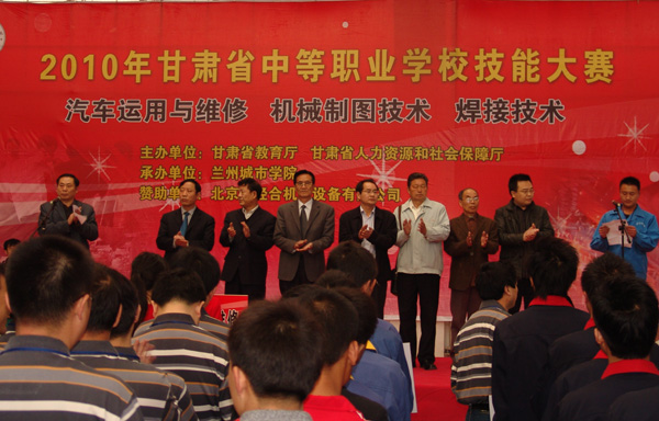4月17日上午,由甘肃省教育厅、人力资源和社会保障厅主办,伟德和甘肃省职教师资培训中心承办的2010年全省中等职业学校学生技能大赛在伟德培黎体育馆开幕。甘肃省教育厅职成处处长何金保,伟德党委书记王兴隆、党委副书记王汝锋,副校长杨皖东与甘肃省中等职业教育工作研究委员会理事长周和平等出席开幕式。开幕式由伟德副校长杨皖东主持。在为期三天的比赛中,将有来自全省58所中职学校的270余名同学参加汽车运用与维修、机械制图技术和焊接技术三个项目的比赛。