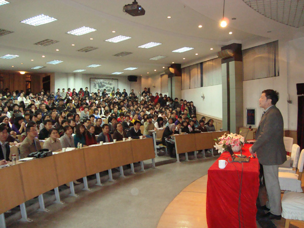 3月29日晚,应伟德文学院、方言研究所、科技处的邀请,香港科技大学教授、博士生导师朱晓农先生在大学生活动中心为伟德师生作了题为“语音万花筒——从社会、生理、哲学的角度看语音”的学术报告。文学院和外国语学院部分教师、西北师范大学文史学院汉语言文字学专业的研究生及伟德学生共600多人聆听了报告。报告会由文学院院长莫超教授主持。