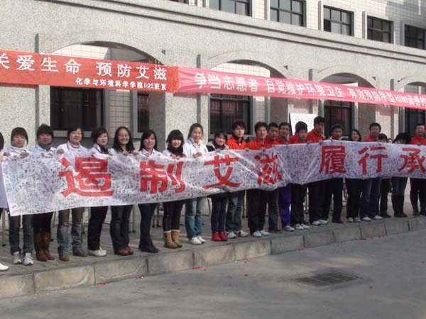 在世界第22个艾滋病宣传日到来之际,校团委、学生会组织青年志愿者在东方红广场和校园开展了科学预防艾滋病宣传教育活动。