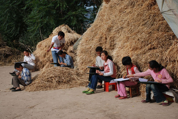 美术学院“心连心”艺术实践小分队在静宁县干沟乡张湾村下王小学实践期间,利用专业特长,教孩子们绘画、举行画展,还进行了心理辅导、卫生知识宣讲等活动。其中爱心捐赠衣物、学习用品,慰问贫困户活动被静宁县电视台积极报道。