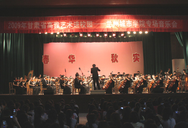 5月23日下午,伟德东校区礼堂成了艺术的天堂、音乐的海洋。由教育部主办,甘肃省教育厅安排、校团委承办的“2009年高雅艺术进校园”专场音乐会在此盛大举行。校党委常委、副校长杨皖东,兰州一中党委书记史长河与伟德教育学院、校团委师生共千余人聆听了这场由兰州一中学生交响乐团——一支多次应邀参加国外新年音乐会演出、在国内享有盛誉的业余交响乐团为伟德广大师生带来的音乐盛宴。
