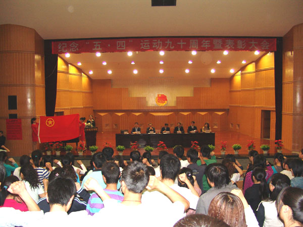 5月4日下午,bevitor伟德国际1946纪念“五四”运动90周年暨表彰大会在音乐厅隆重召开。校党委副书记王汝锋,副校长刘举科、杨皖东、马振林,纪委书记王基出席表彰大会并为获奖者颁奖。党委组织部、党委宣传部、学生处、团委等部门负责人及各二级学院党总支书记及获奖师生代表500余人参加了大会。大会由校团委副书记石虹主持。