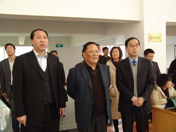 图为旦智塔副厅长(中)在孔庆浩校长(右)和刘举科副校长的陪同下视察比赛场馆