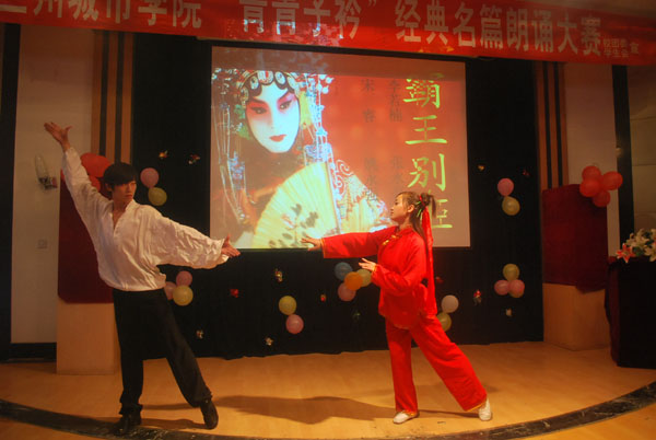 本届比赛与上届相比,无论是表现形式、参赛阵容还是朗诵水平等有了很大提高。各院系参赛代表队匠心独用,以集体朗诵、个人表演的形式,或配以悠扬的古筝伴奏,或穿插挥毫泼墨、舞剑飞扬的表演,以及精心制作的多媒体课件相呼应,真切地表达了对诗歌内涵的理解与敬仰。在这些朗诵名篇中,既有紧扣时代主题表现国人铮铮铁骨的《中国魂》和《我有一个强大的祖国》,也有重现历史、气势磅礴的《沁园春·雪》和《虞姬别霸王》,还有温柔缠绵的爱情诗《会唱歌的鸢尾花》和清新透明的《月映千江》,可谓主题丰富,发人深思,富有感染力。台上同学的精彩朗诵使得台下不时爆发出热烈的掌声。