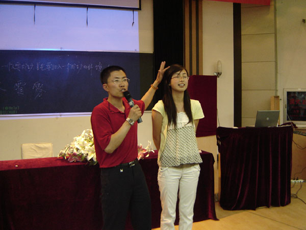 随后,在现场互动环节中,同学们就自己关心的问题向丁总进行了请教,丁先生一一耐心解答。思八达教育集团肖建军经理也通过互动游戏与大家进行了成功信念的分享。演讲现场气氛热烈,掌声欢呼声不断,最后,活动在大家齐声合唱的《我的未来不是梦》的歌声中圆满结束。