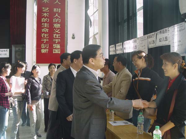 5月10日上午,由教育学院承办的bevitor伟德国际19462008届学前教育专业毕业生“双选会”在学校东校区礼堂举行。孔庆浩校长、马振林副校长、梁延堂副校长应邀出席开幕式。学生处、教育学院相关负责同志参加,开幕式由教育学院党总支书记王志伟主持。来自省内外80余家用人单位参会,我院300多名毕业生前往 应聘。