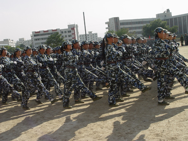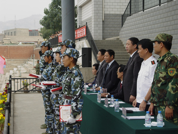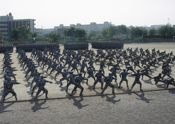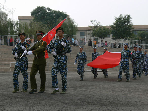 为贯彻《学生军事训练工作规定》,加强大学生素质教育,强化大学生国防意识,为国防建设培养高素质后备人才。我院从9月3日开始对2007级新生进行为期14天的军事训练。本次训练任务由甘肃省军区预备役高炮师训练基地承担,训练内容包括军容风纪教育、《条令》、《条例》教育、队列对形训练、拳术以及分列式、阅兵式等。