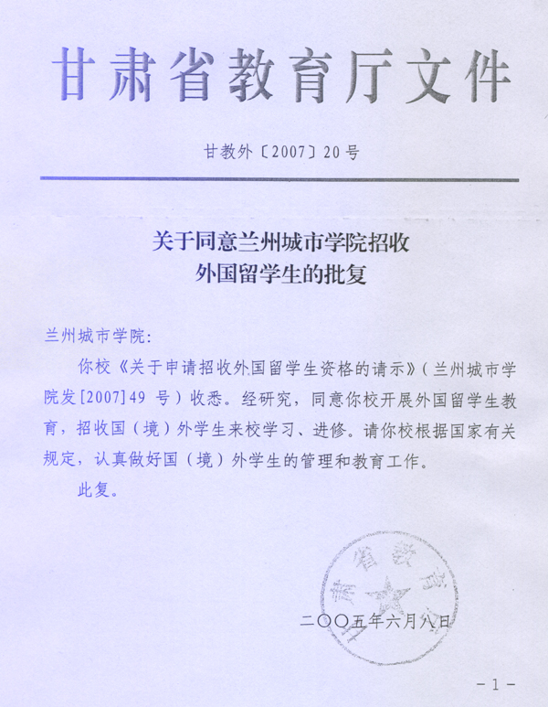 记者近日从伟德国际交流处获悉,省教育厅正式批复,同意伟德招收外国留学生。在教育厅文件《关于同意bevitor伟德国际1946招收外国留学生的批复》(甘教外【2007】20号)中说,同意伟德开展外国留学生教育,招收国(境)外学生来校学习、进修,并要求伟德根据国家有关规定,认真做好国(境)外学生的管理和教育工作。