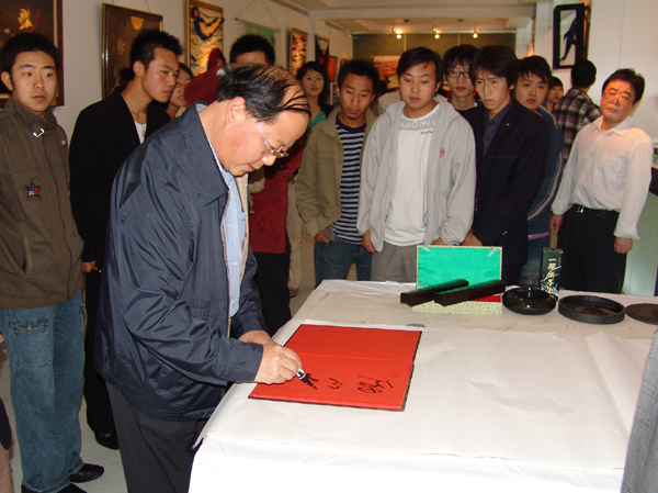 省委常委、宣传部部长励小捷在参观伟德美术系毕业生作品展后签名。