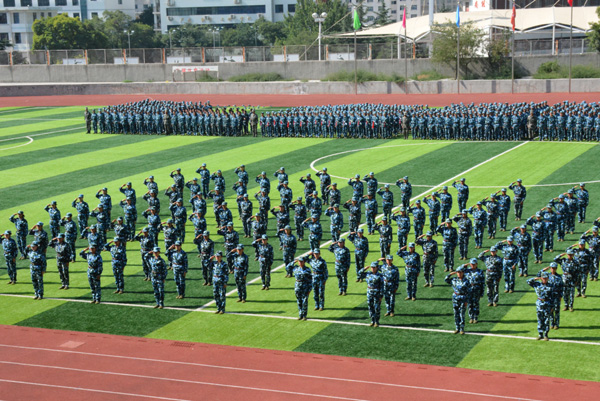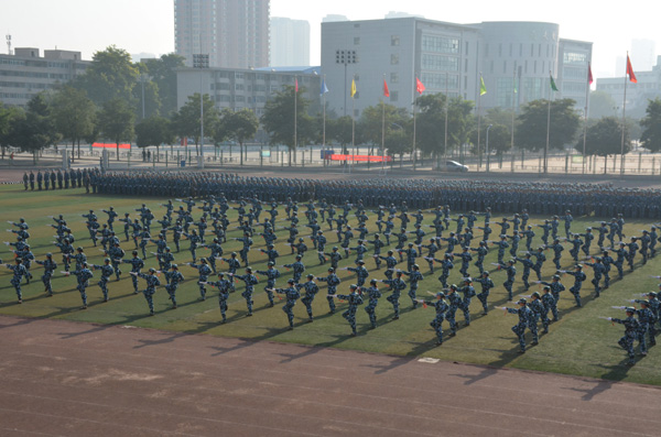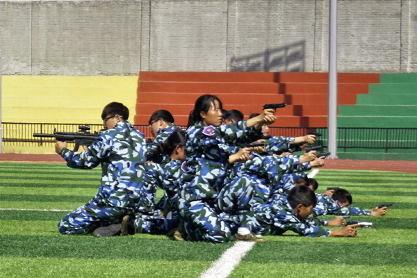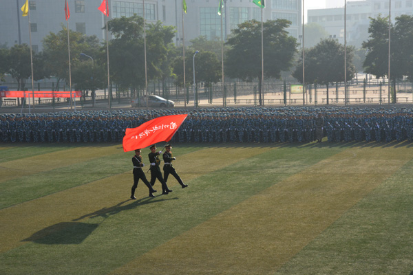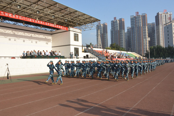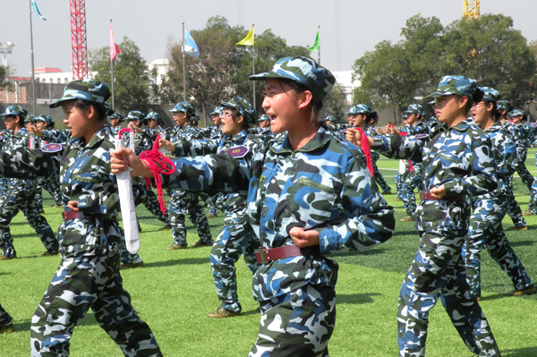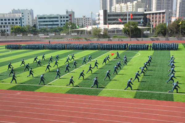 会上,学员们进行了分列式表演,他们神情专注、步伐整齐、口号响亮,赢得了领导们的称赞。分列式结束后,进行了汇报表演,表演科目分有男生队列动作方队、女子军体拳、女子队列操、男子擒敌拳、女子匕首操、战术和棍术演练、综合演练与救援等。