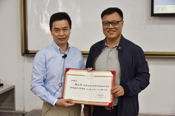 9月28日,学校邀请汕头大学教师发展与教育评估中心主任陆小华教授来校,作了关于OBE及CDIO教育模式的构建与实施专题报告。校长陈晓龙出席,副校长梁延堂主持报告会。报告会上,学校聘请陆小华教授为伟德专业建设特聘顾问,陈晓龙向陆小华颁发了聘书。
