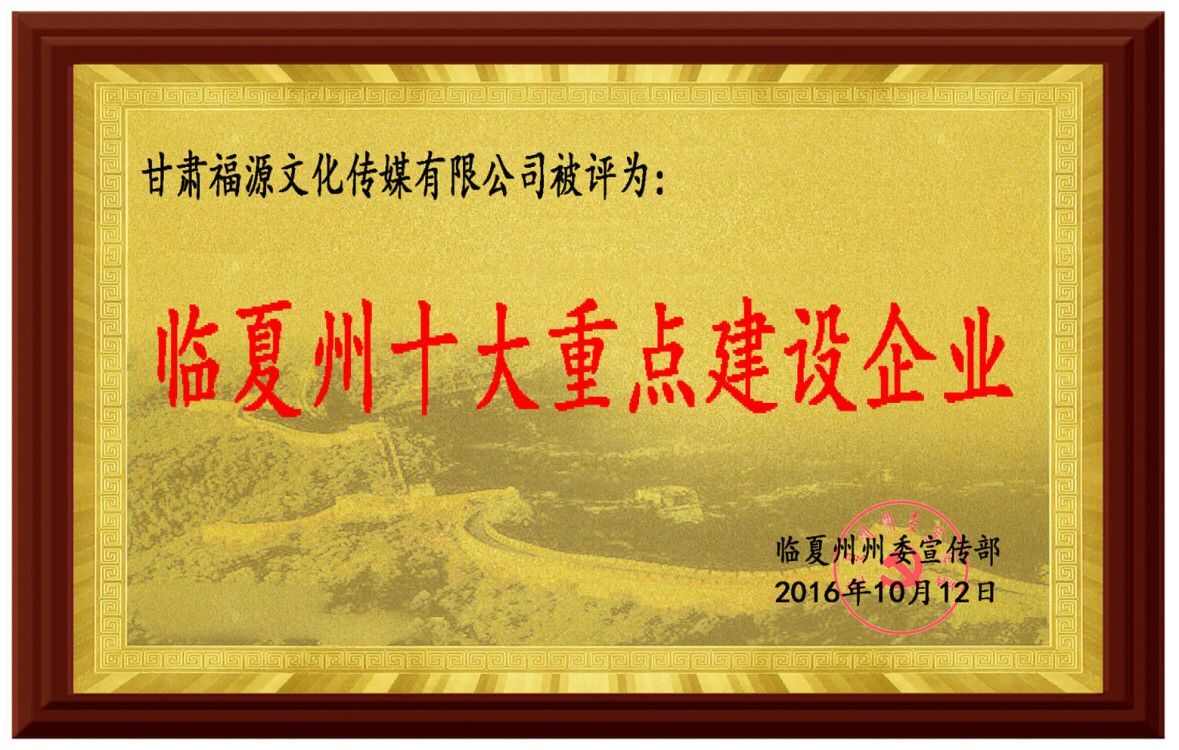 甘肃福源文化传媒有限公司是集策划、创意、商演、设计、制作、代理、发布、安装、咨询为一体的媒介性传媒公司,主要从事数字广告业务、发展互联网广告及新兴媒体等诸多业务。公司2016年营业额超过百万,已成为广河县传媒行业“龙头企业”。因表现优秀,甘肃福源文化传媒有限公司在2016年被授予“临夏州十大重点建设企业”、“临夏州2016年度重质量、讲规矩、守诚信质量荣誉同盟企业”、“临夏州商业模范企业”、“临夏州大中专学生进企业示范点”、“临夏州‘城市百千万创业工程’征集项目一等奖”、“广河县纳税突出贡献企业”、“广河县守合同重信用企业”、“广河县质量诚信品牌优秀示范企业”等荣誉称号。同时,该公司被临夏州工商联合会授予常务理事单位、被临夏州广播电视局确定为文化宣传战略合作企业。