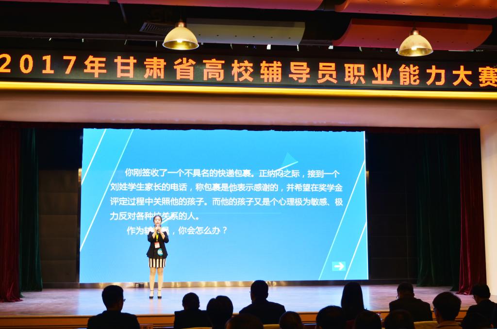 3月20日-22日,由省教育厅主办的2017年全省高校辅导员职业能力大赛在西北师范大学举行。伟德传媒学院辅导员纪生贵、培黎机械工程学院辅导员沈月获优秀奖。