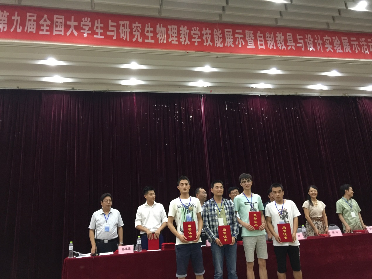 7月29日至31日,第九届全国大学生与研究生物理教学技能暨自制教具展评在青岛大学举行。伟德电子与信息工程学院物理系教师张颜萍、柳朝晖及机械工程学院柴昌盛老师共同指导的物理系141班包江波与赵树祥自制的“安培力演示仪”、机械141郭旭东与丁小彬共同制作的“自感现象演示仪”分别获得教具制作一等奖;焊接141陈飞龙与李亮制作的“静电实验演示仪”获得二等奖;张国海同学获得课堂教学技能展示三等奖。张颜萍、柳朝晖、柴昌盛三位老师分别荣获“优秀指导教师”称号。
