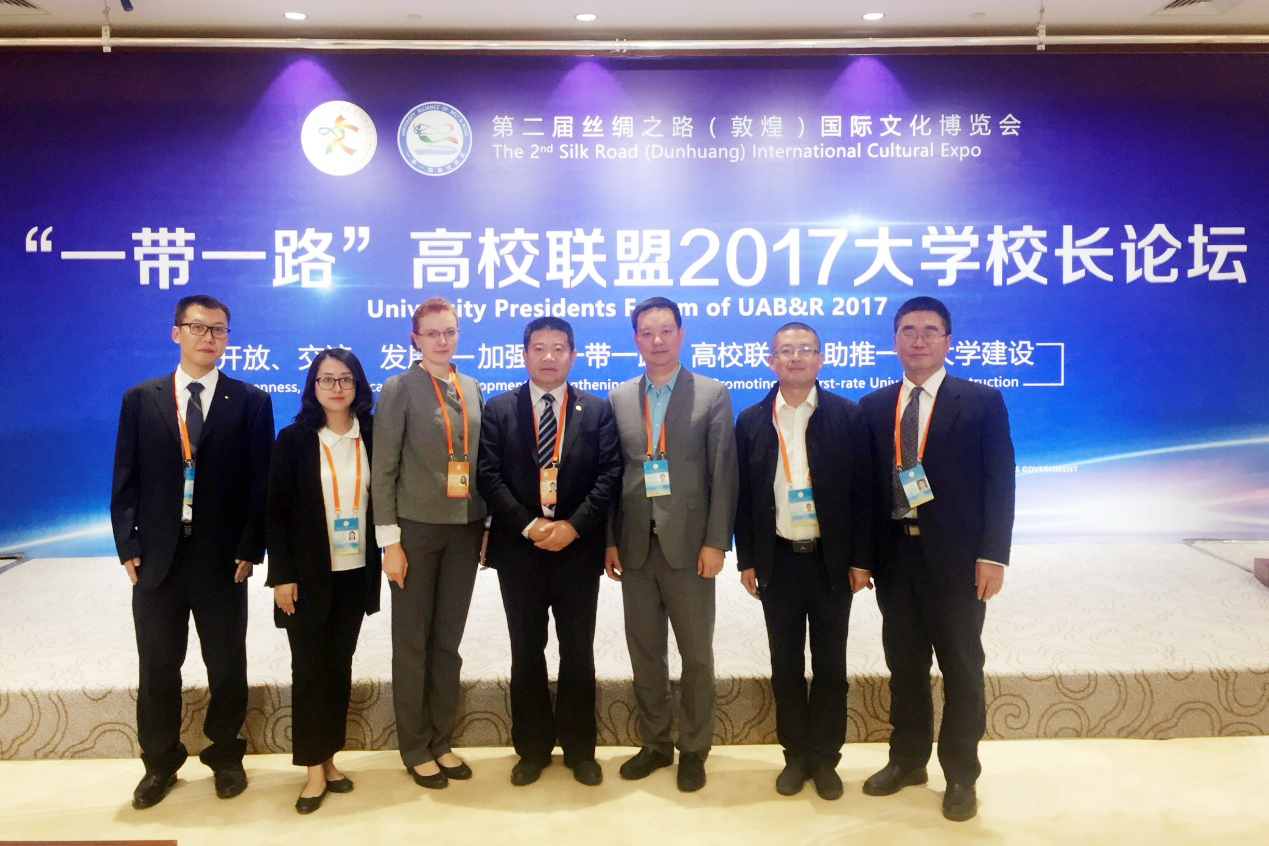 9月20日下午,第二届丝绸之路(敦煌)国际文化博览会系列活动——“一带一路”高校联盟大学校长主题论坛在敦煌国际会展中心举行。本次论坛由甘肃省人民政府主办,甘肃省教育厅、兰州大学承办,敦煌市政府协办。来自10个国家27所国内外高校的60多名校长、专家紧紧围绕“开放、交流、发展——强化“一带一路”高校联盟,助推一流大学建设”的主题共话合作交流发展,共商一流大学建设。