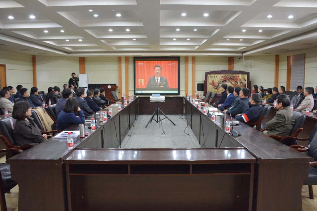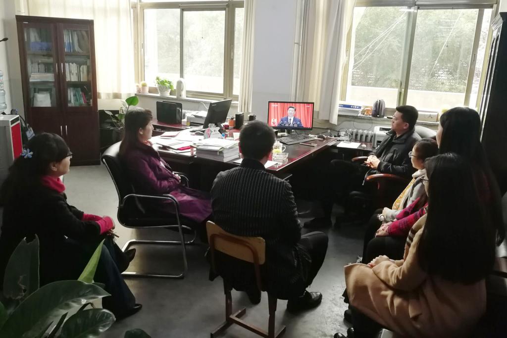 学校领导和机关部门负责人集中收看大会直播