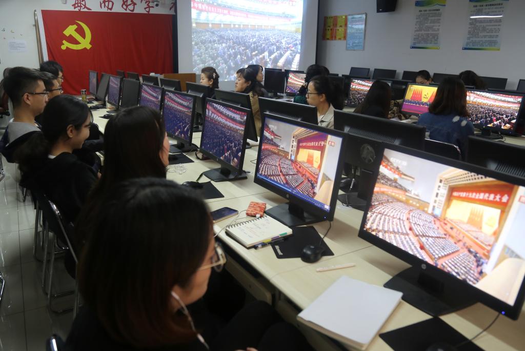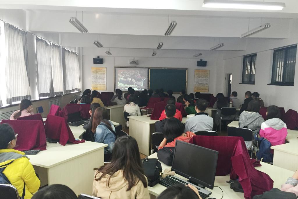 商学院师生收看大会直播