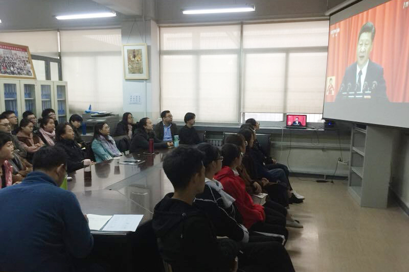 为了让师生第一时间了解十九大开幕盛况,学校分别在综合楼一楼会议室、逸夫图书馆六楼国际会议厅、各二级学院会议室开辟了会场,组织师生集中观看。会后,大家纷纷表示要全面深刻理解把握习近平总书记报告的丰富内涵,把思想和行动统一到大会精神上来,不忘初心,牢记使命,高举中国特色社会主义伟大旗帜,决胜全面建成小康社会,夺取新时代中国特色社会主义伟大胜利,为实现中华民族伟大复兴的中国梦不懈奋斗。