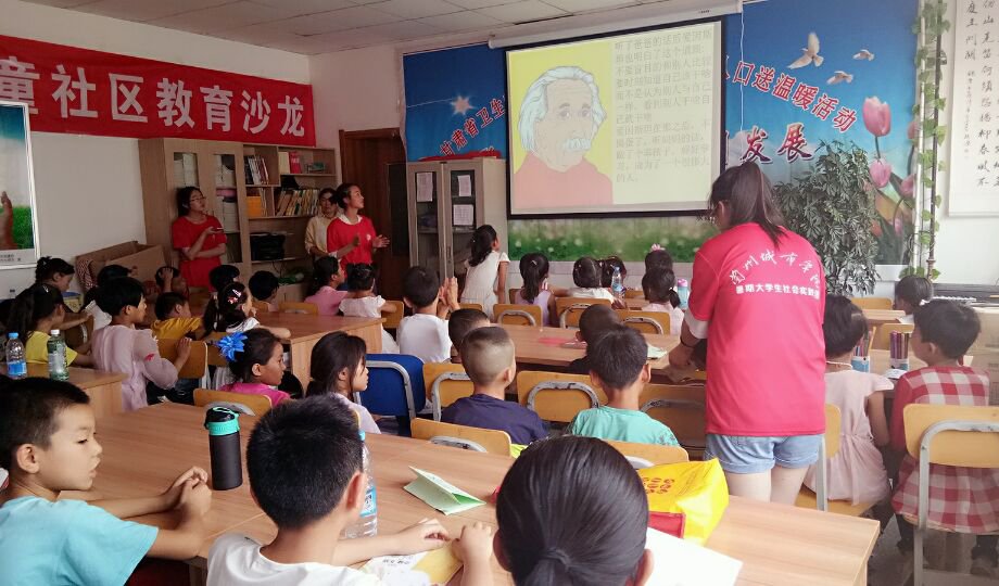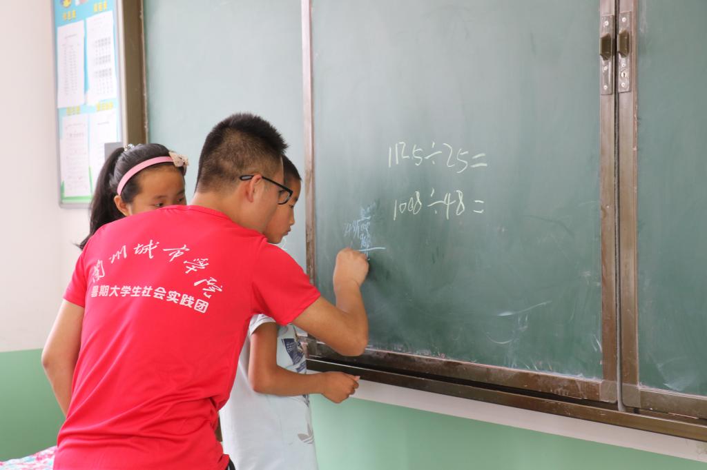 数学学院暑期社会实践团同学利用多媒体设备给小朋友们上课