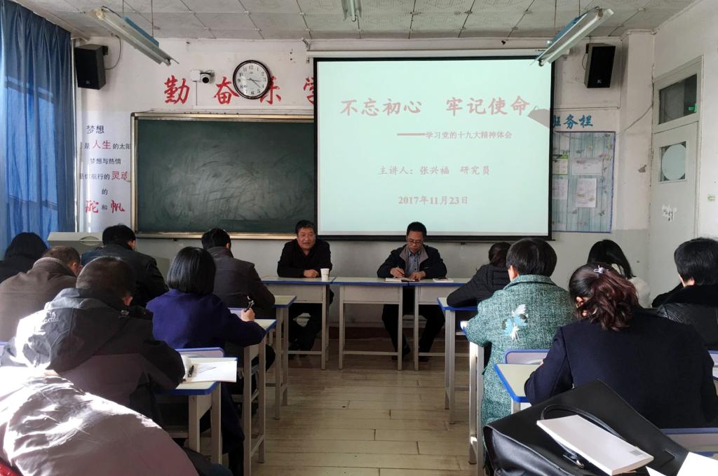 11月23日下午,校党委常委、副校长张兴福作了题为“不忘初心,牢记使命——学习党的十九大精神体会”的辅导报告。来自化学与环境工程学院、培黎机械工程学院和机关党委第四党支部、离退休党总支、实验中专直属党支部的60余名党员教师、干部听取了报告。