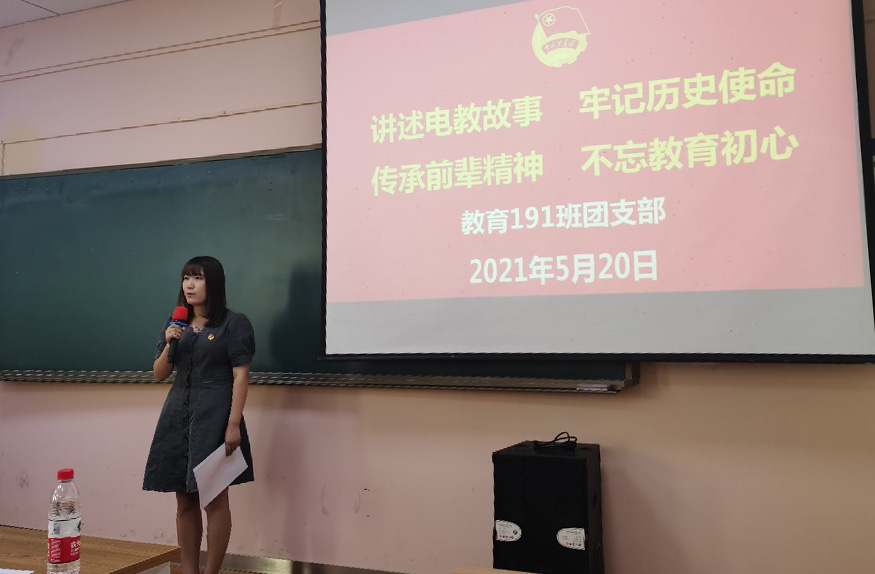为庆祝中国共产党成立100周年,深入开展党史学习教育,引导广大青年学生学党史、强信念、跟党走,5月20日下午,教育学院举办了“讲述电教故事,牢记历史使命,传承前辈精神,不忘教育初心”教育技术191班团支部风采展示活动。教育学院负责人、教育技术专业教师和教育技术191班全体同学参加了此次活动。