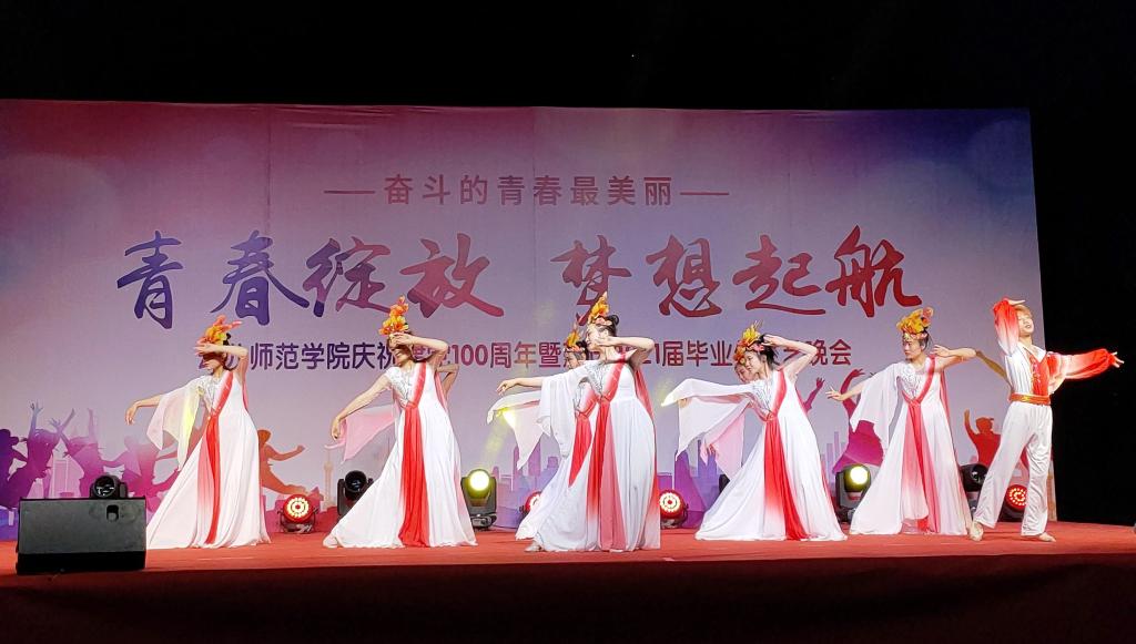 文艺演出在热情活力的开场舞蹈中拉开帷幕,随后,歌曲《青春不散场》、《同桌的你》,情景诗朗诵《觉醒时代》,古筝演奏《大鱼》,表演唱《烟雨行舟》,小合唱《凤凰花开的路口》等节目将晚会推向高潮,晚会在主题舞蹈《灯火里的中国》中圆满落下帷幕。