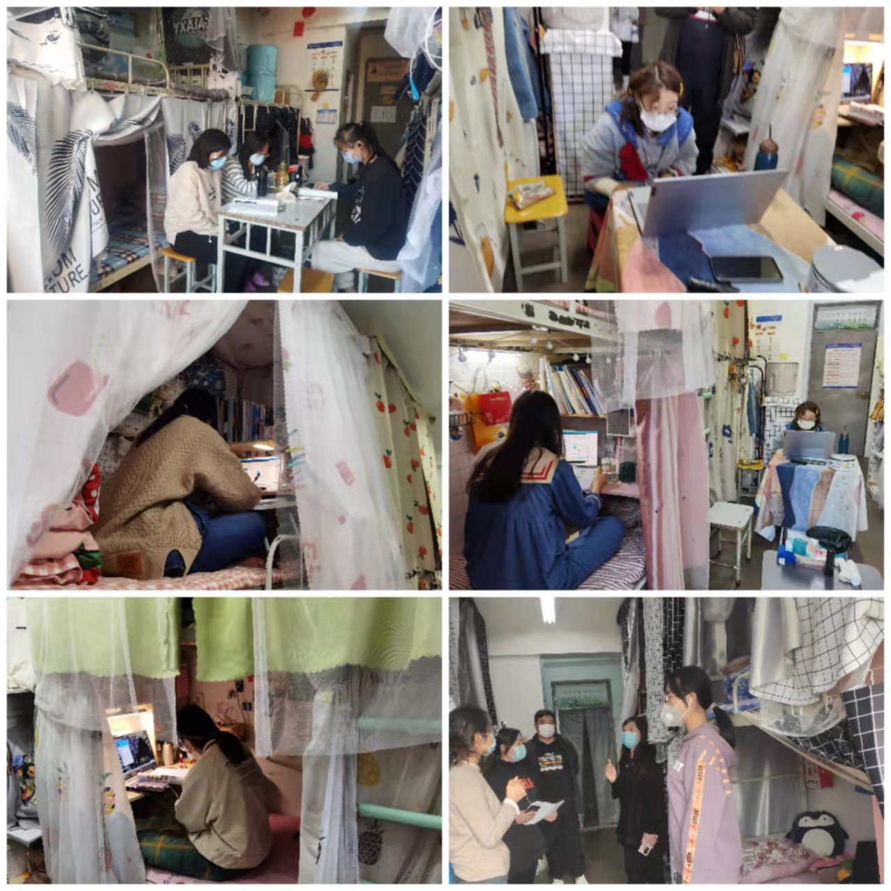 学院高度关注学生线上学习和日常生活状况,抽样排摸学生学习情况并给予及时指导,管理干部数次深入学生宿舍、了解学生学习生活情况,联系学校后勤和服务部门,为学生办实事、排忧解难;利用文明宿舍创建评比之机,制作《学生宿舍内务整理标准》小视频,下发各宿舍参照落实。
