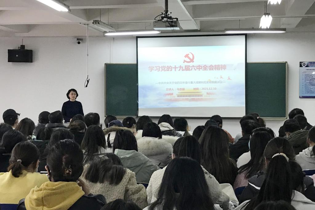 12月10日,城市经济学院举办党的十九届六中全会精神宣讲会。学院党委负责人进行宣讲,学院全体学生党员、学生代表共150人聆听了宣讲。