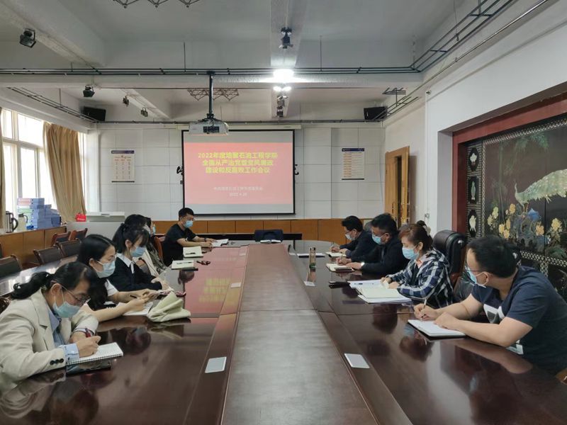 4月25日下午,培黎石油工程学院党委召开2022年度全面从严治党暨党风廉政建设和反腐败工作会议。会议由学院党委负责人主持,学院党委委员、各党支部负责人参加会议。