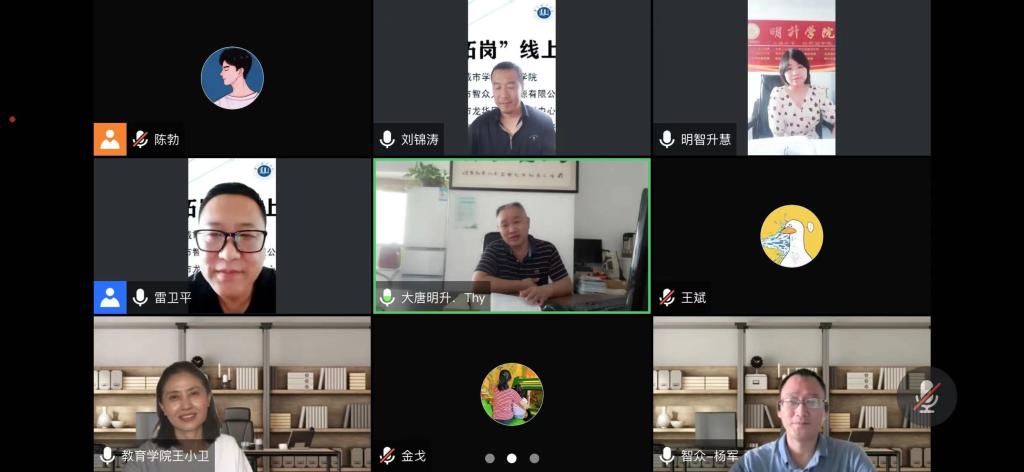 为贯彻落实《教育部办公厅关于开展全国高校书记校长访企拓岗促就业专项行动的通知》及省教育厅《关于开展2022届高校毕业生“百日冲刺”就业活动的通知》文件精神,8月27日上午,教育学院召开“访企拓岗”线上座谈交流会。深圳市智众人力资源有限公司负责人杨军、深圳市龙华区明升培训中心负责人江慧、深圳市大唐明升企业管理咨询有限公司负责人唐后元,伟德教育学院负责人及相关工作人员参加会议。