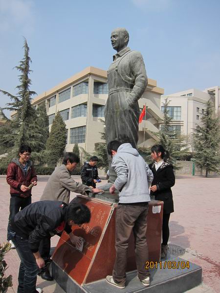 实践活动以班级团支部为单位,组织团员对学院30多个实验室、实训场地进行了卫生大扫除和仪器设备的基本养护;以团学干部为主体,对培黎校区的艾黎和何克雕像进行了细心的除尘、擦洗;学生党员和入党积极分子走出校门,全面清扫培黎广场,擦洗健身器材、公共设施及座椅,刮擦小广告。部分青年志愿者参加了由安宁区文明办、交警大队及兰州公交三公司主办的“讲文明 树新风做文明有礼的安宁人——畅交通志愿服务活动的启动仪式”,并协助15路、131路公交车队导乘员维持乘车秩序,宣讲文明乘车、礼貌乘车准则,唱响文明之风,展示了伟德青年学子的良好风采。