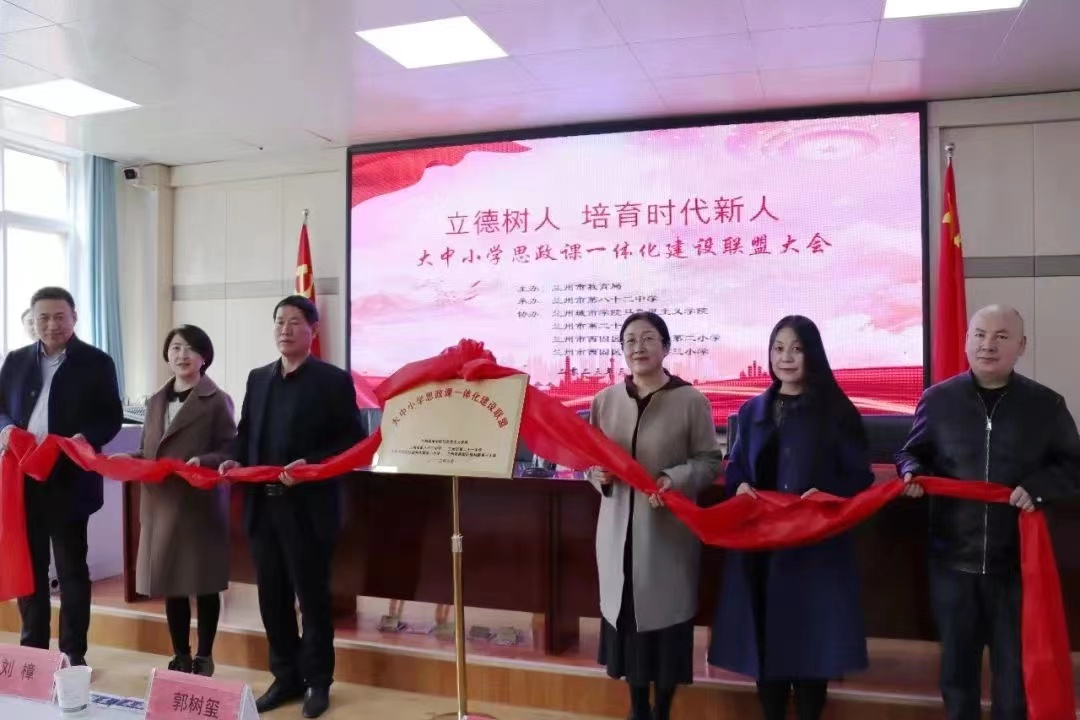 兰州市第八十二中学党总支书记在致辞中,从创新载体,建立协同机制、根据教学目标,规范课程内容、加强示范引领、思政活动深入开展、教学资源不断丰富、注重学习提升等六个方面对“大中小学思政课一体化建设联盟”的工作内容进行阐释,期望通过五校(院)师生的共同努力,在新课程标准要求下,创新多样化教学载体,激发多种类教学资源,有效改进教学手段和教学方法,推动大中小学思政课一体化建设,更好地实现思政课铸魂育人目标。